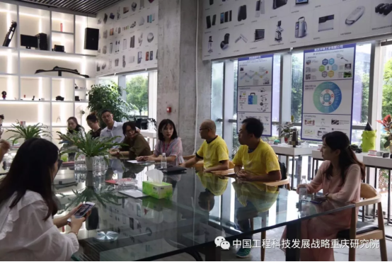 在重庆浪尖渝力科技集团有限公司,调研组参观了浪尖6大创新资源板块,并与企业代表进行了座谈会议,深入了解了该公司在人才引进、贸易出口、政府政策等方面的经验做法、取得的成效与存在的问题。